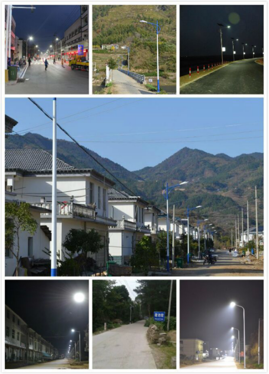 蓝锐为响应新农村建设号召,截止2015年8月份相继在岳西、潜山、宿松、太湖、安庆、宣城、合肥、信阳等地实现了乡村道路照明工程100余例。为乡村人民的生活质量的提高、乡村的美好建好贡献了一份力量。