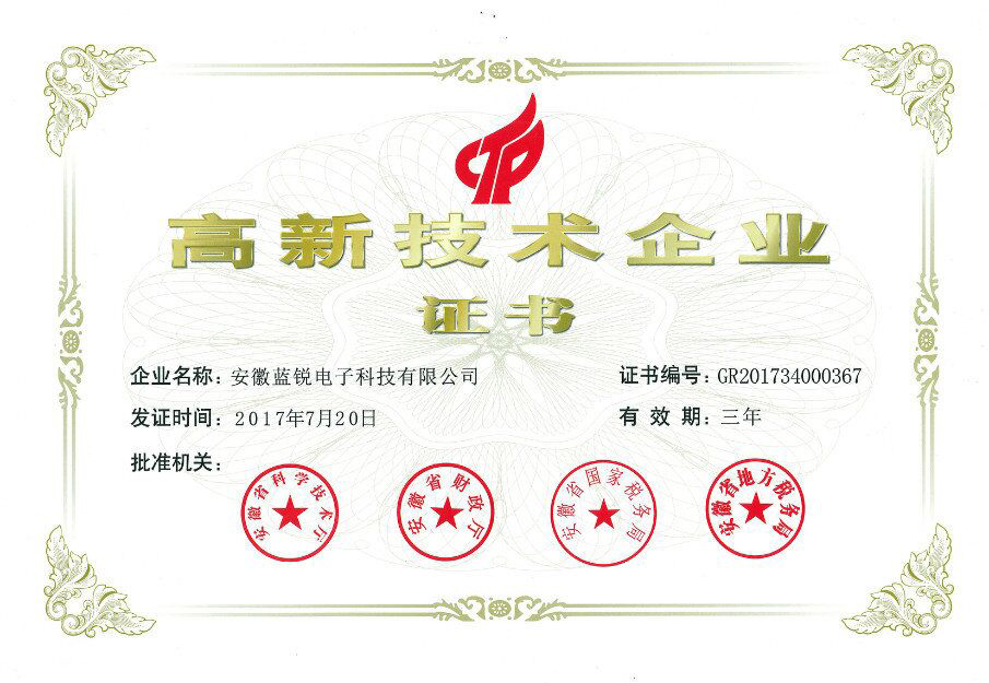 2017年11月3日,安徽省2017年度第一批高新技术企业认定名单公布,我公司名列榜单,获得由省科技厅、省财政厅 、省国税局、省地税局联合颁发的《高新技术企业证书》,证书编号:GR201734000367,将享受国家高新技术企业所得税优惠等相关政策支持。