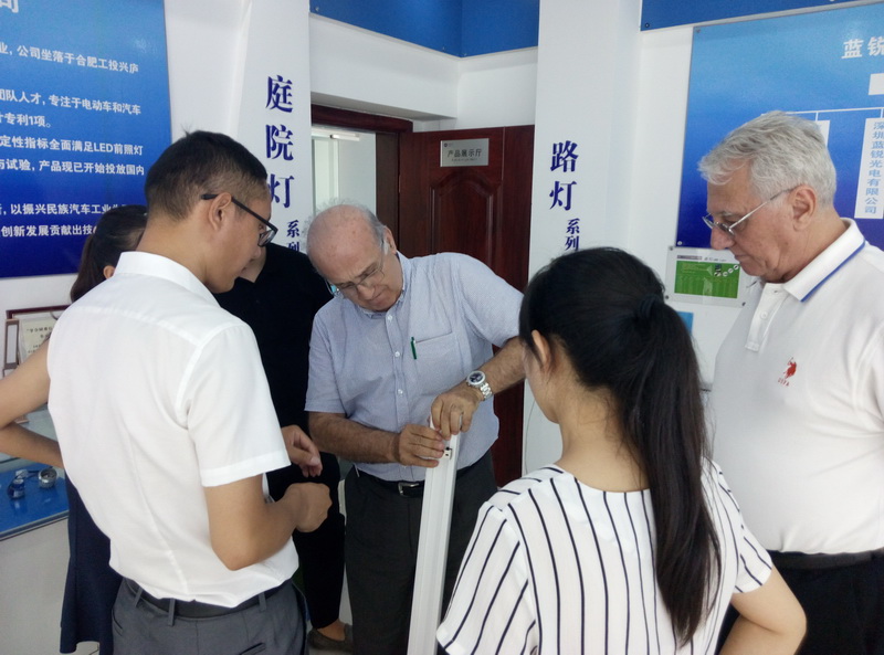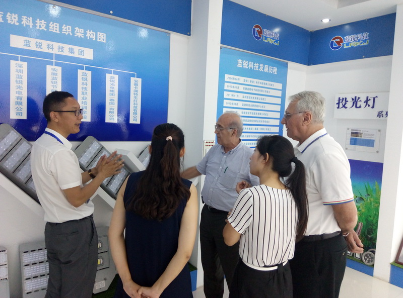 外商一行在公司董事长储昭学和外贸部经理吴晓英的带领下,参观了产品展示中心、生产车间、检测中心等场所,对公司的LED系列产品、生产制造过程、产品检测检验等情况进行详细了解,并对意向采购的产品进行了重点考察了解。
