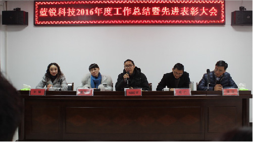 雄鸡报晓、再踏征程。2017年1月23日上午,蓝锐科技“放飞梦想,逐梦前行” 2016年终总结暨先进表彰大会在岳西总部四楼大会议室隆重举行。公司领导与各地员工代表欢聚一堂,总结成绩,指出不足,规划目标,部署任务,畅谈未来。