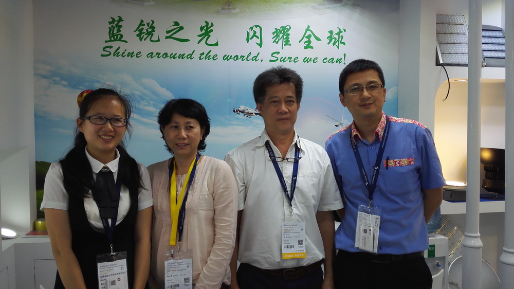 本届展会蓝锐展台设计简约大气,重点突出蓝锐品牌形象,着重展出了公司2016款200lm/w系列LED日光灯、高性价比LED泛光灯、鳍片式LED工矿灯和柱形塑包铝LED球泡灯等一系列新研发的产品,先进的设计理念和创新的产品外观吸引了大批来自国外批发商和国内工程商的驻足参观咨询,部分国外客户通过对产品和公司先进理念的了解,当场确认成为我公司的海外分销代理。蓝锐销售精英和技术骨干们通过热情、耐心、专业的接待,成功收集了上百位客户资料信息,多数客户达成了潜在的合作意向,部分客户直接到公司江门分厂考察并下单。展会期间,来自西班牙、泰国、美国、菲律宾、台湾的老客户也受邀不远千里来到公司展会现场,与我们进行面对面的沟通与交流,获得了客户宝贵的意见和建议,进一步加深稳固了双方的合作关系。