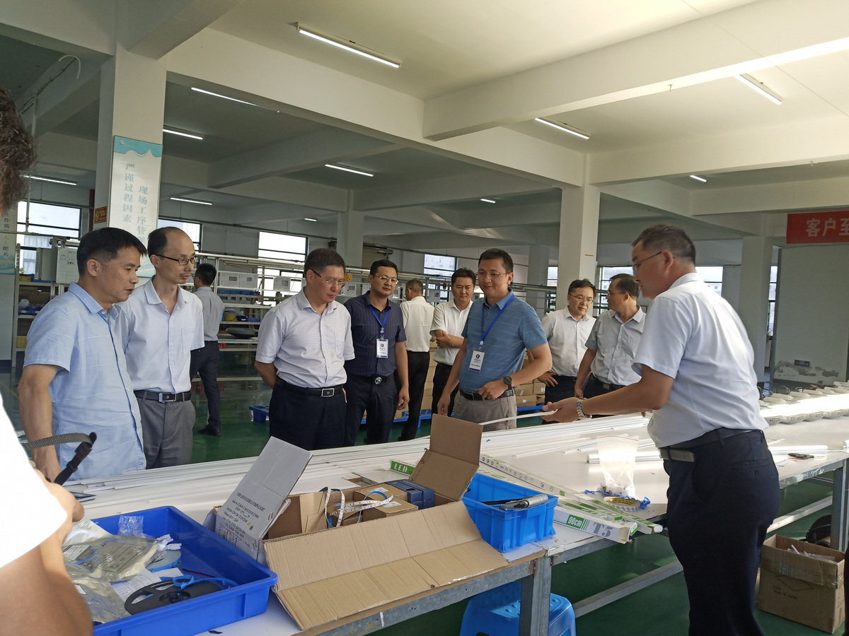 调研组一行深入到生产车间一线、产品测试中心、产品展示中心,现场参观了解公司的主营产品、生产流程、品质管控、研发实验等情况,并在公司接待室举行了深入交流座谈。胡总首先代表公司对杨明副厅长一行的到来表示热烈欢迎,感谢各级领导长期以来对蓝锐发展的关心和支持,随后就公司近年来的总体生产运营、市场应用、技术创新,以及企业遇到的困难问题和未来发展方向一一作了详细汇报。