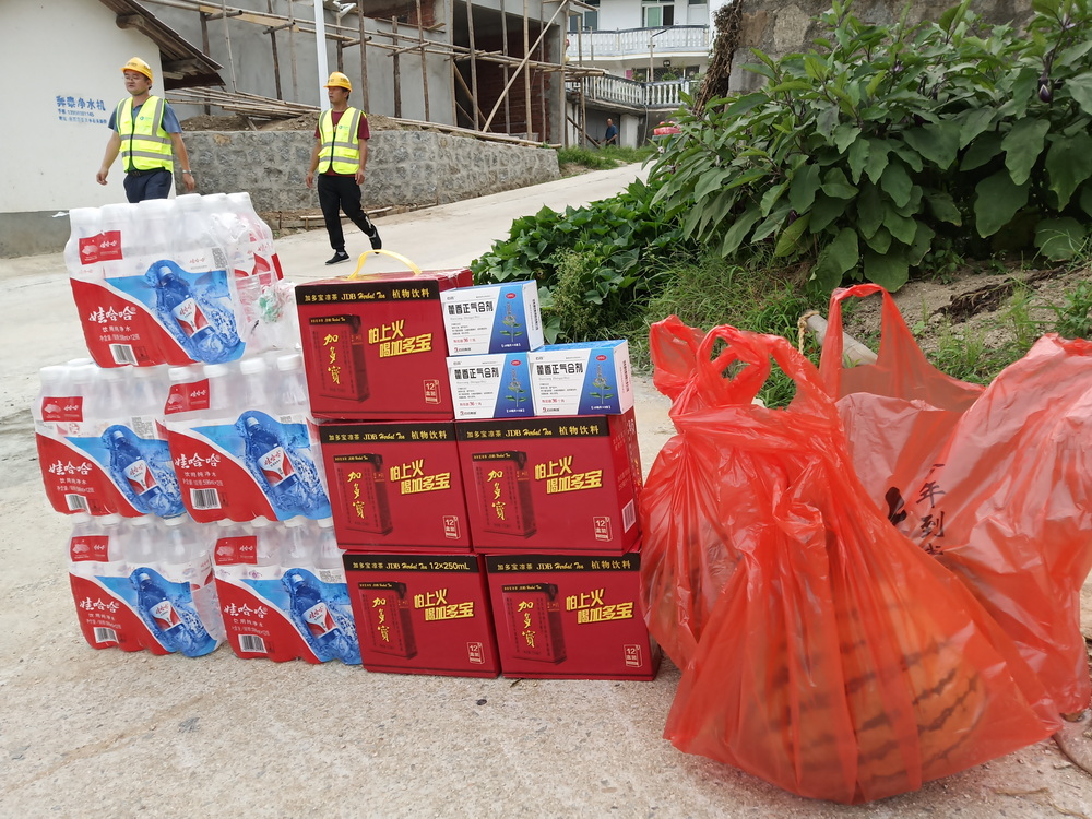 8月10日下午,慰问组一行来到石关乡人居环境亮化项目建设工地,为奋战在施工一线的工人送去矿泉水、凉茶、西瓜、藿香正气水等防暑降温慰问品,感谢他们不畏高温酷暑,坚守施工一线,保障工期能顺利完成付出的辛勤努力。同时要求现场施工负责人要根据高温天气情况灵活调整,合理安排好高温时段的工人作息时间,劳逸结合,扎实做好防暑降温和安全施工工作,确保人员健康安全和工程进度两不误。